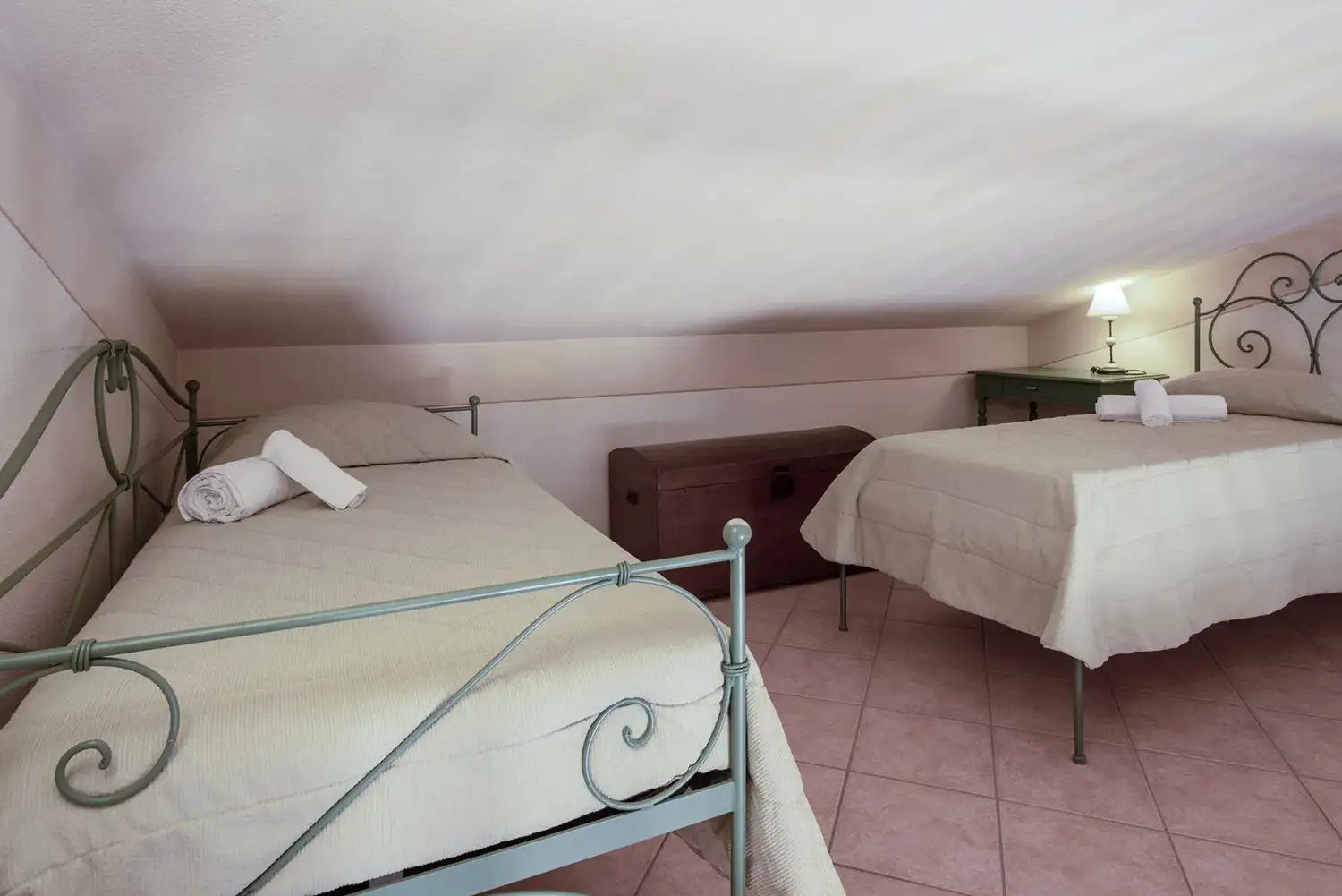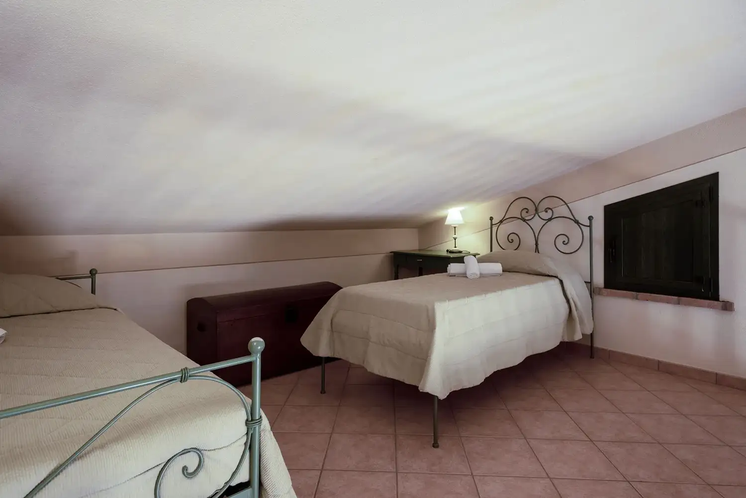 Vide met 2 eenpers. bedden. Badkamer. Overdekt terras voorzien van tafel en stoelen.