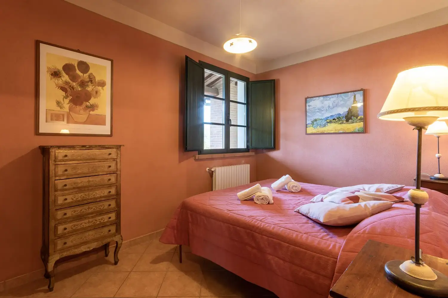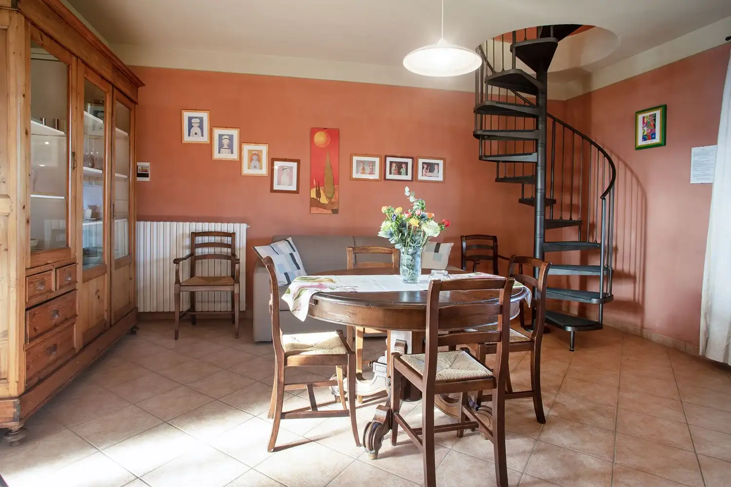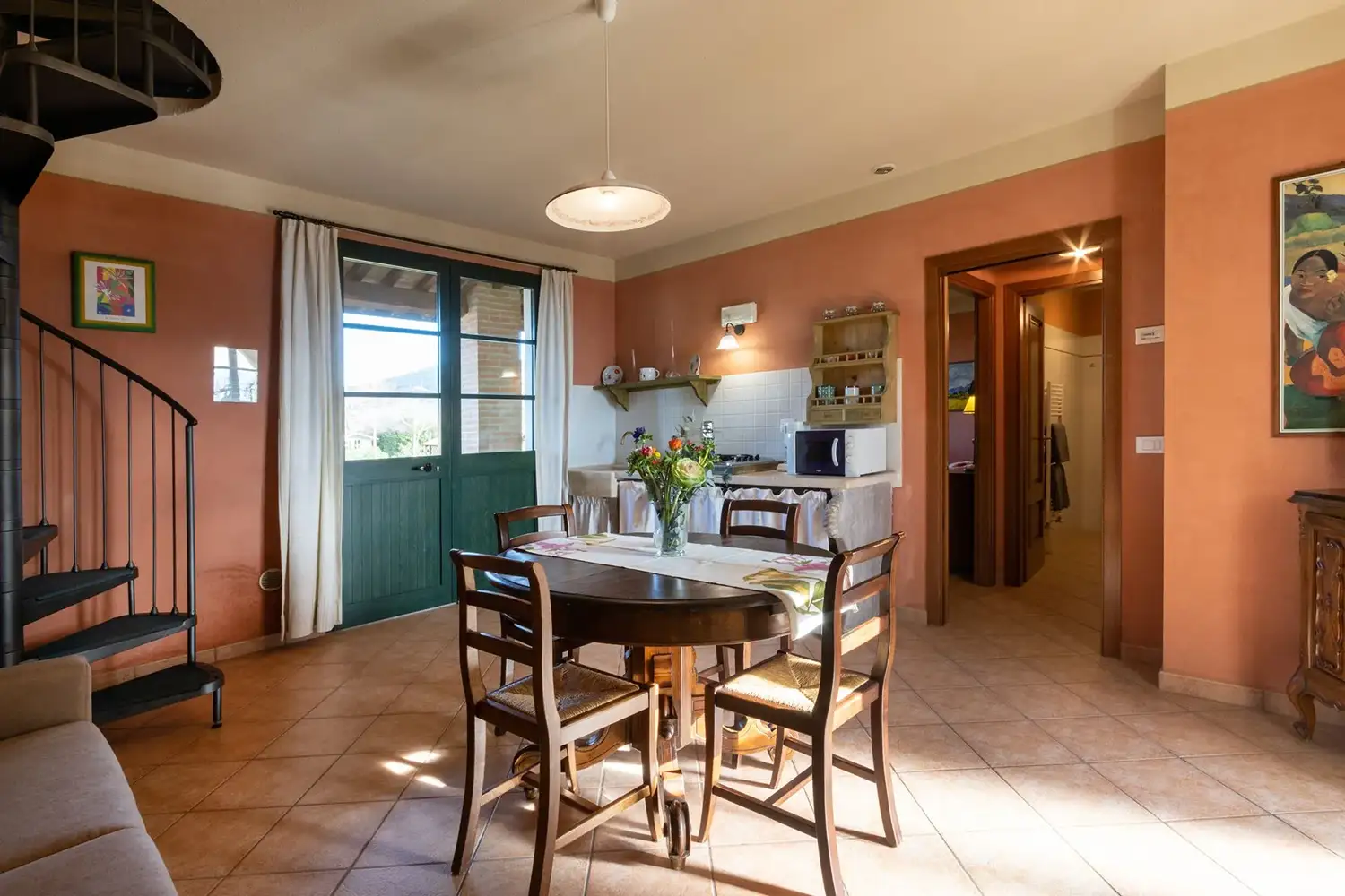 Via wenteltrap gaat men naar de 2e slaapkamer met 2 eenpers. bedden en 2e badkamer.