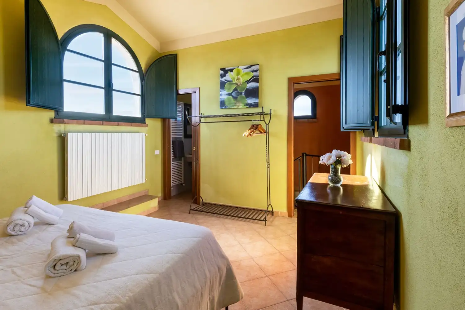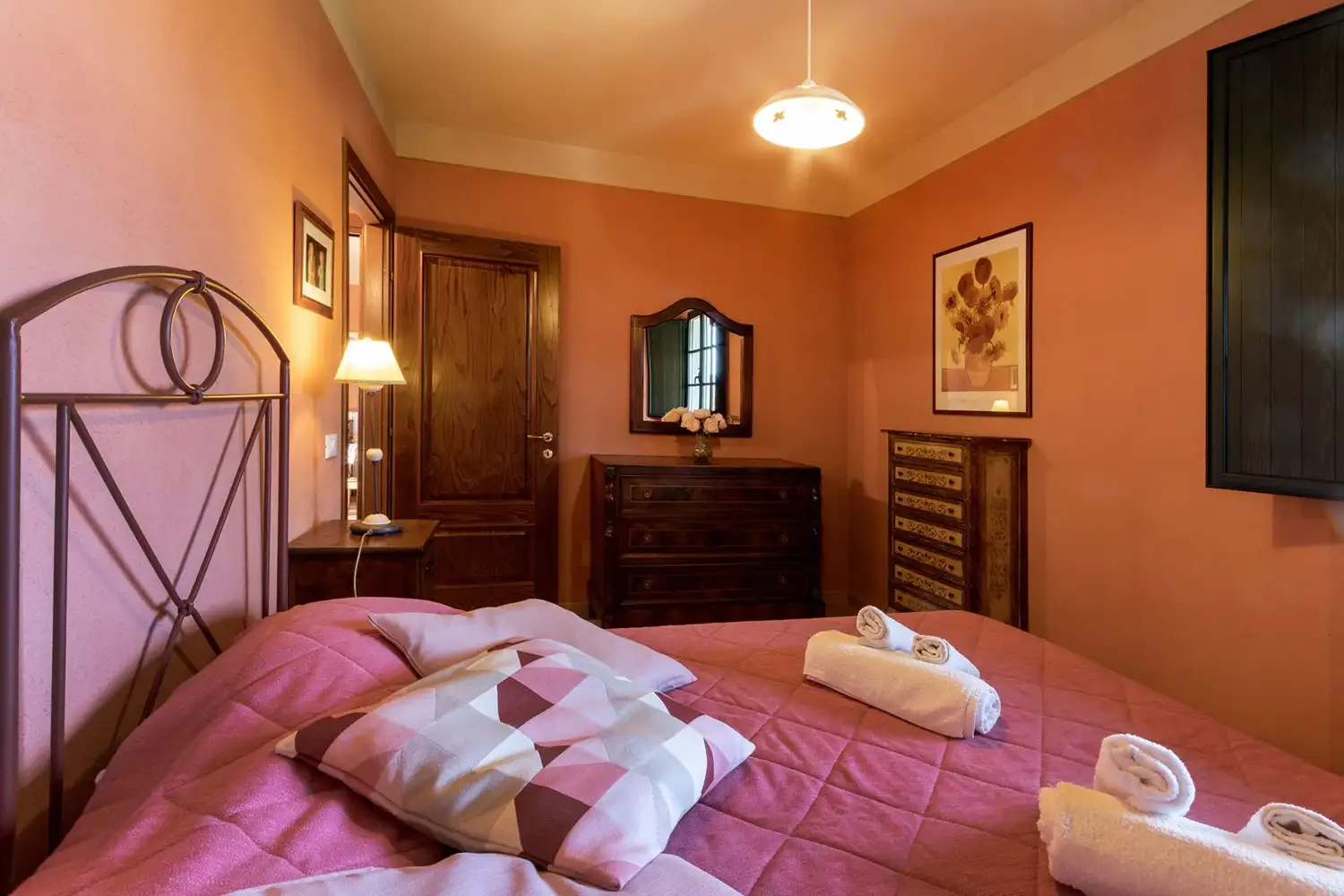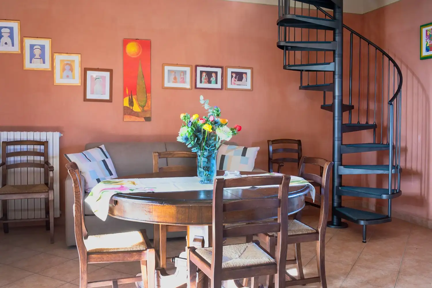 Via wenteltrap gaat men naar de 2e slaapkamer met 2 eenpers. bedden en 2e badkamer.