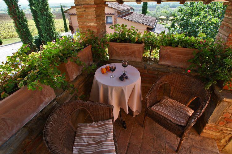 Direct bij entree knus overdekt balkon met buitenzitje.