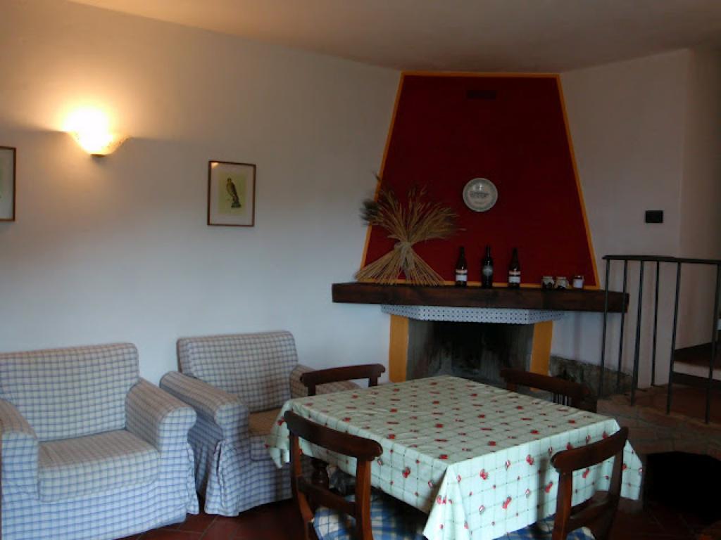 Woon-/eetkamer met keuken en open haard. Tweepers. slaapkamer. Slaapkamer met 2 eenpers. bedden. Badkamer.