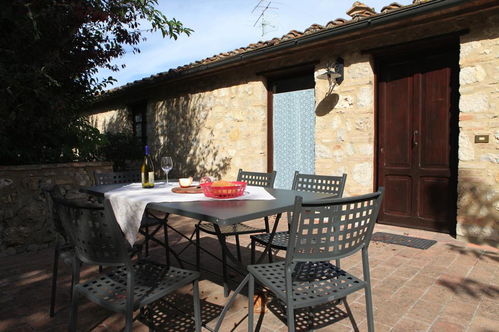 Woon/eetkamer met keuken en slaapbank. Slaapkamer met tweepers. bed.