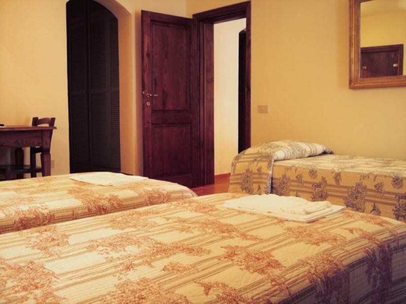 Ruime slaapkamer met drie eenpers. bedden en ensuite badkamer met wastafel, douche toilet en bidet.